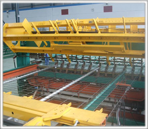 3、走網(wǎng)系統(tǒng)使用計算機(jī)編程控制,橫筋間距無極調(diào)整,改變孔距由程序設(shè)定,同一張網(wǎng)片上可以有多種不同的橫筋間距。